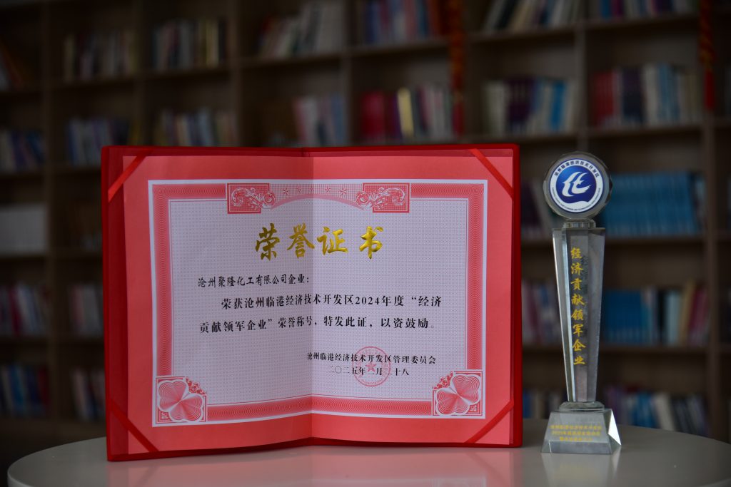 滄州聚隆化工有限公司喜獲滄州臨港經(jīng)濟(jì)技術(shù)開發(fā)區(qū)“經(jīng)濟(jì)貢獻(xiàn)領(lǐng)軍企業(yè)”稱號(hào)
